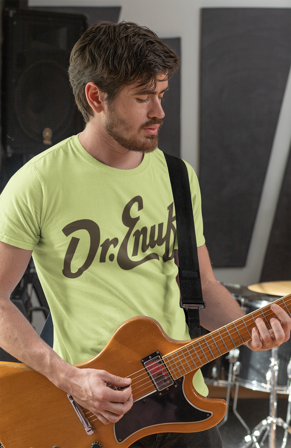The dark-brown organic Dr. Enuf logo sits front and center — crisp, bold, and unmistakably classic. It’s a simple, timeless nod to the drink that’s fueled generations of hikers, musicians, makers, and everyday folks across the region.